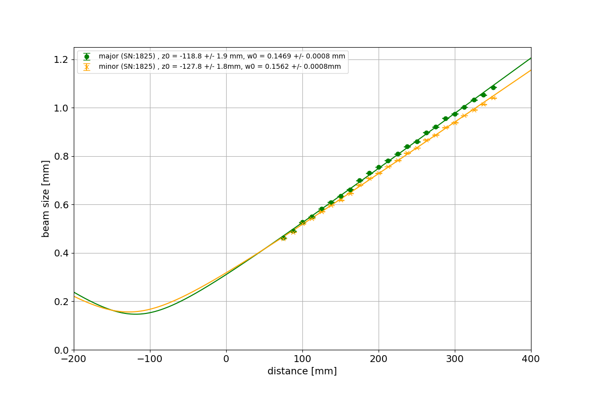 Major : waist position = −118.8 ± 1.9 mm, waist size = 0.1469 ± 0.0008 mm