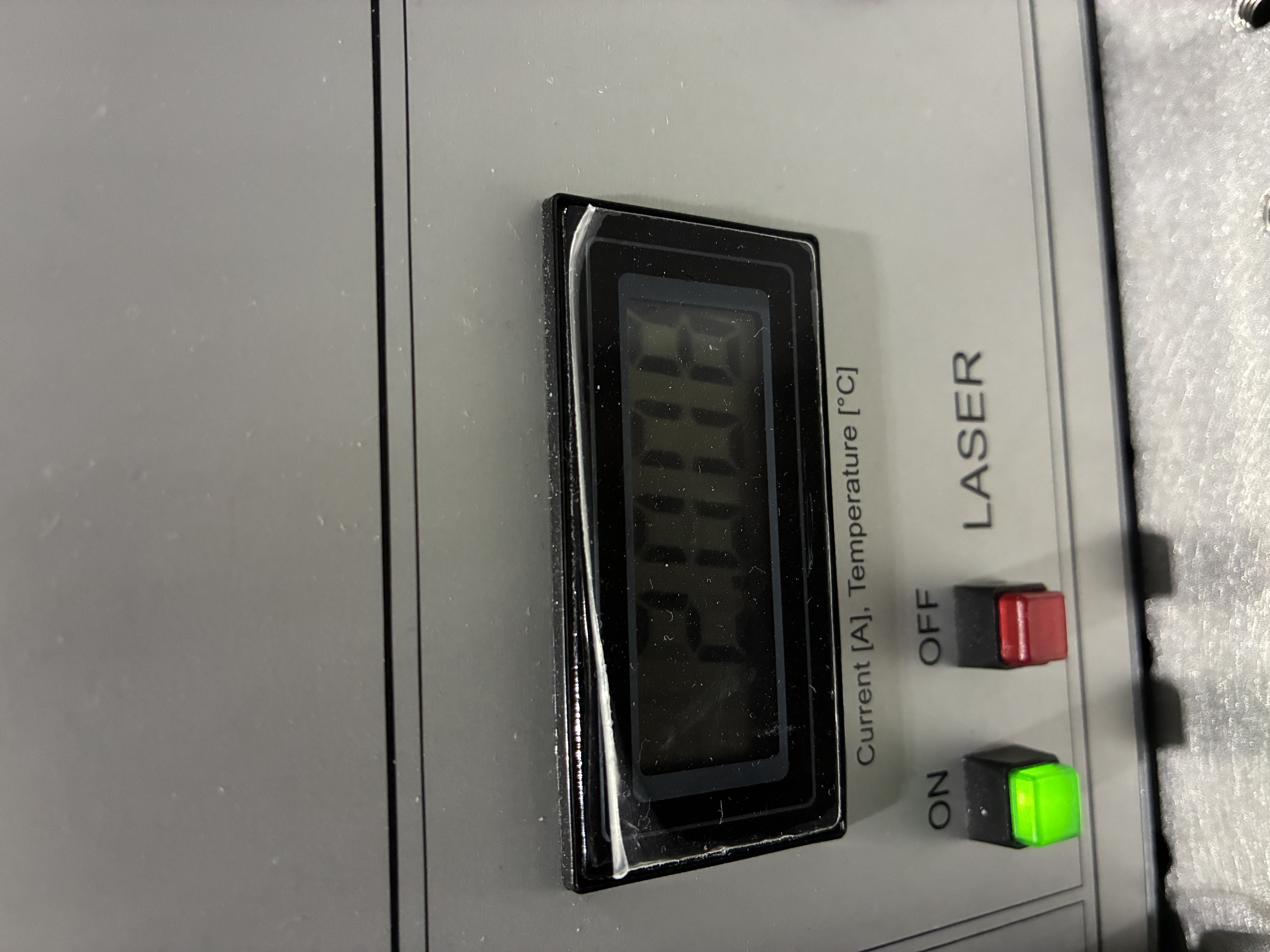 Because of the air conditioner trouble in this summer in the clean room at Toyama University, the output power of this laser was reported to reduce at the level fo 0.9W (2A) from 1.6W.