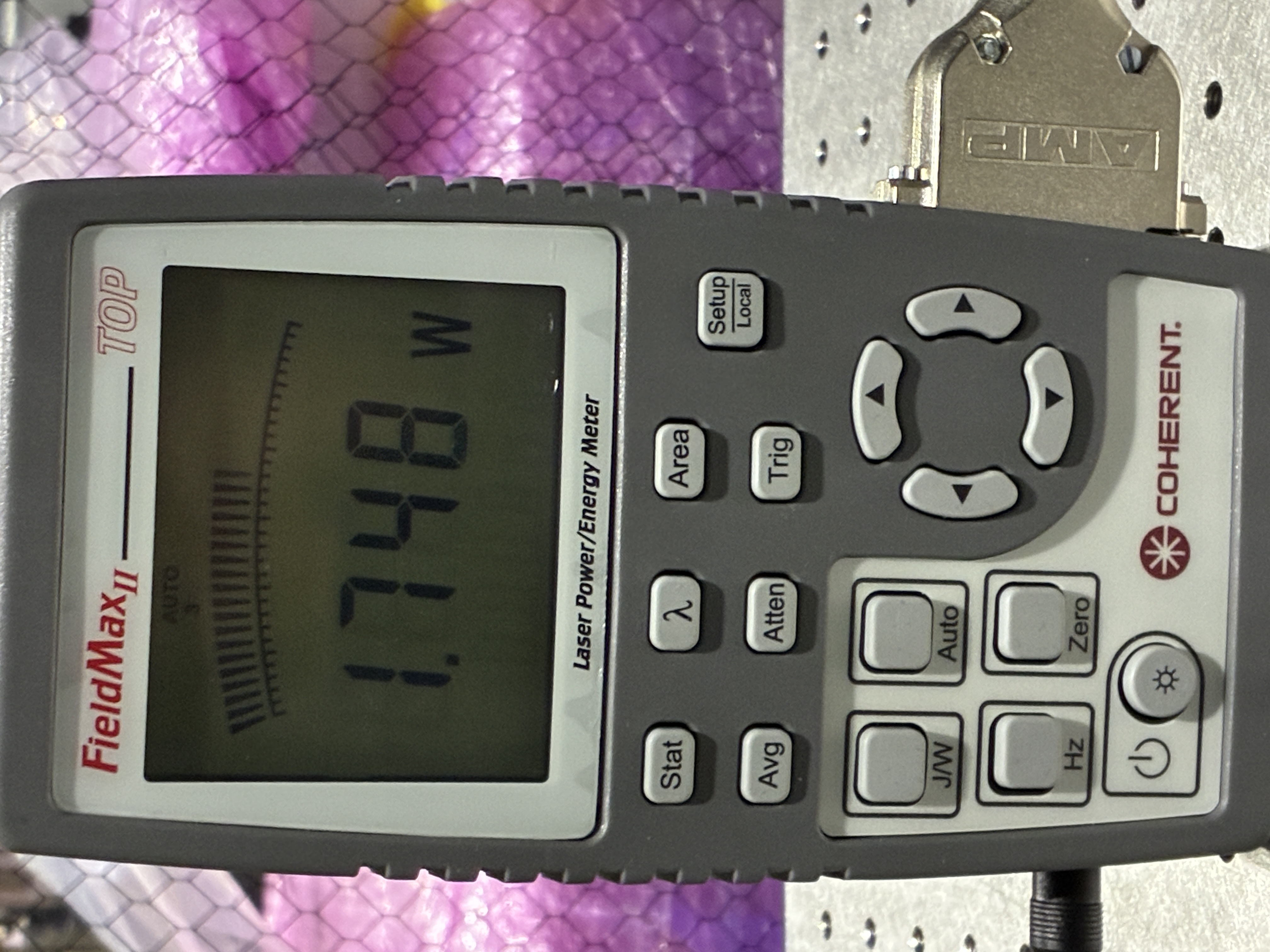 Please check by using other power meter again to confirm the laser power, as the next step.