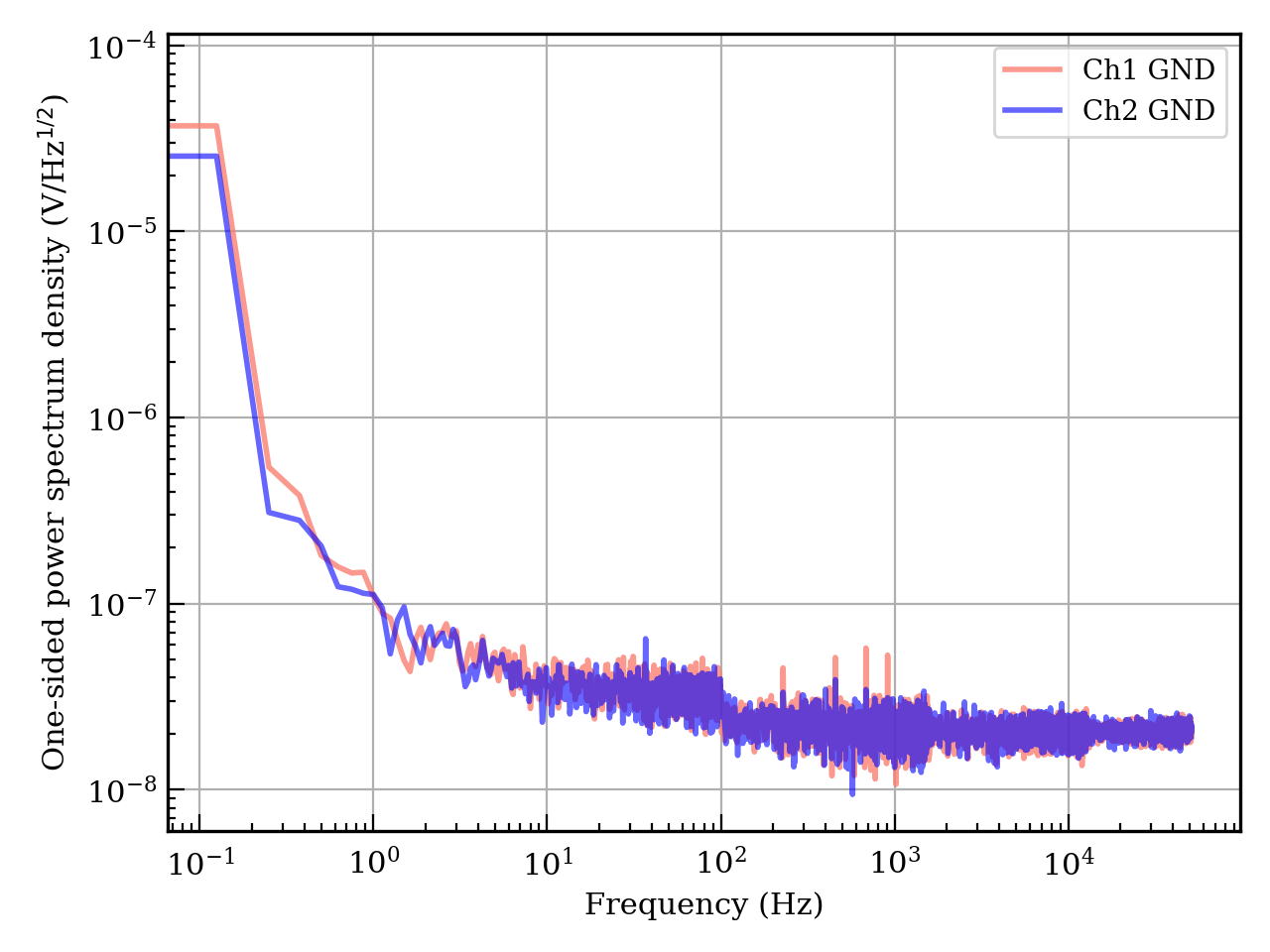 - Fig. 1 shows the ground level of the spectrum analyzer when the both input connectors (Ch1 and 2) were terminated to GND.