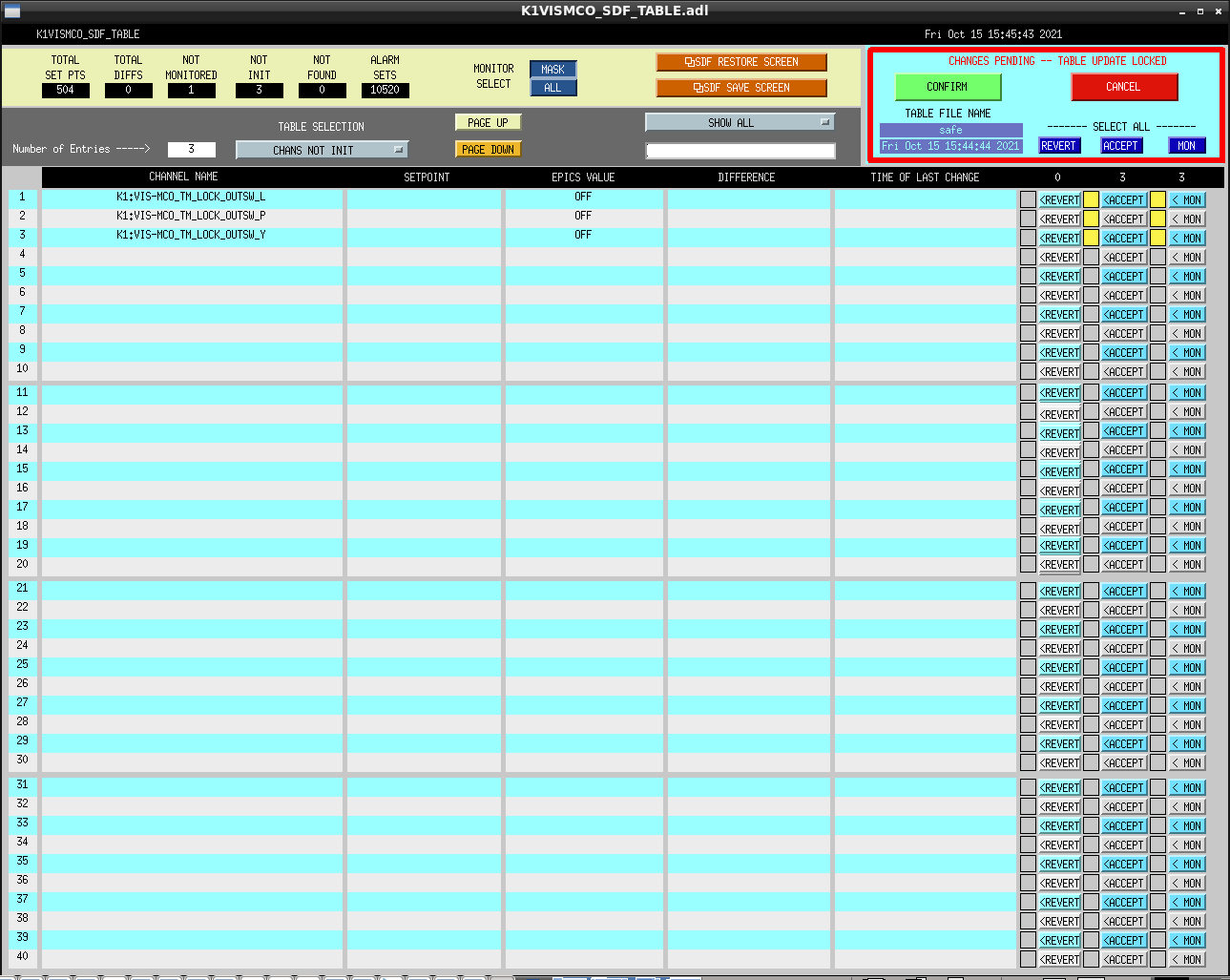 Only ETMX, ETMY, ITMX, and ITMY were updated today.