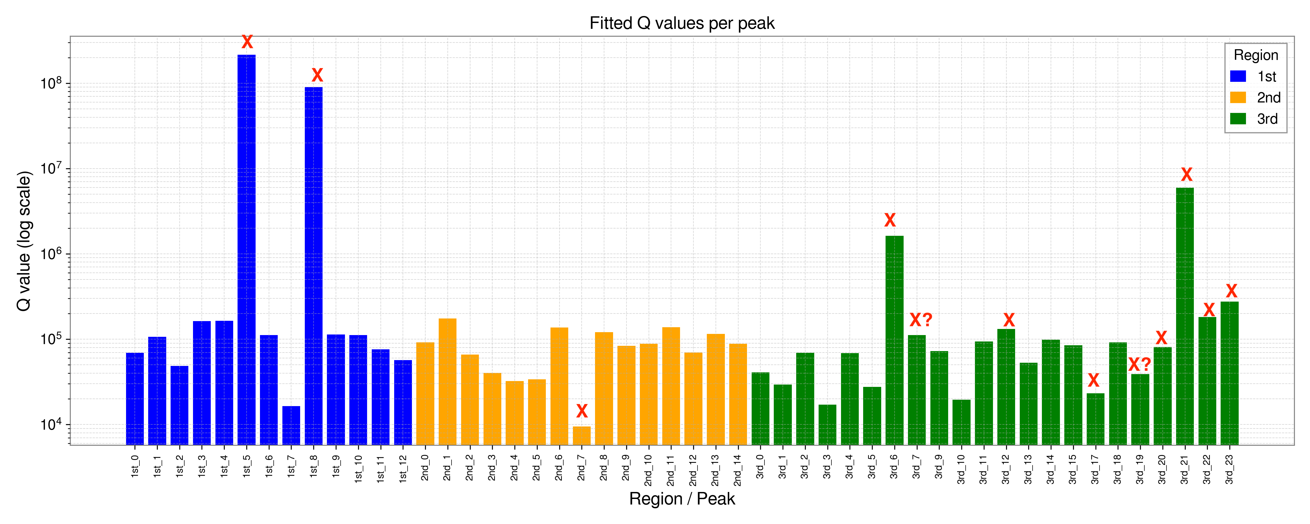 - The peaks that were successfully fitted appear to have Q values on the order of 10^5.