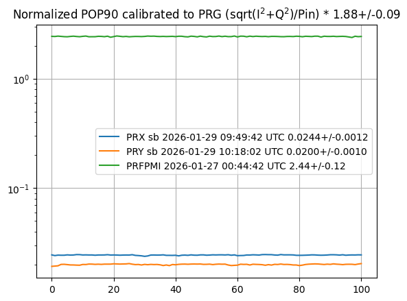 Using these values, the calibration factor for POP90 sqrt(I^2+Q^2)/Pin will be 1.88(9).