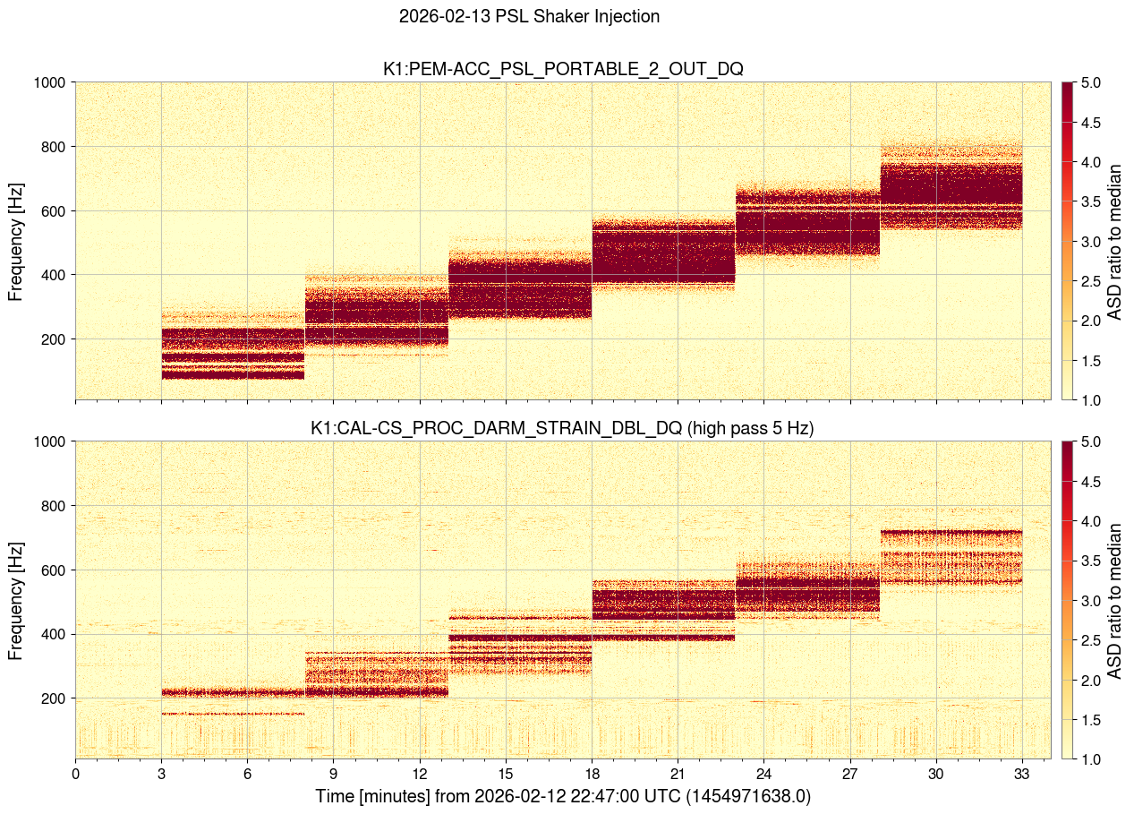 06:31:00 - 06:52:00 EXC channel : K1:PEM-EXCITATION_MCF0_RACK_12_EXC REF : K1:PEM-ACC_PSL_PORTABLE_2_OUT_DQ Shaker 4, swept sine injection, 155 - 53 Hz, 1 Hz resolution, 10 s in each frequency, 40 cnt