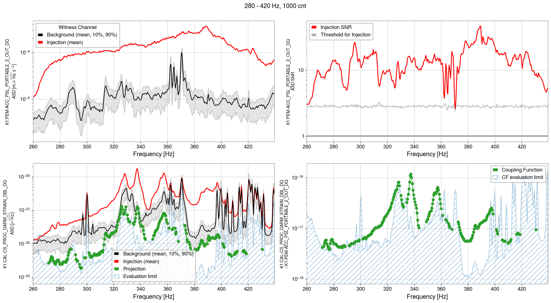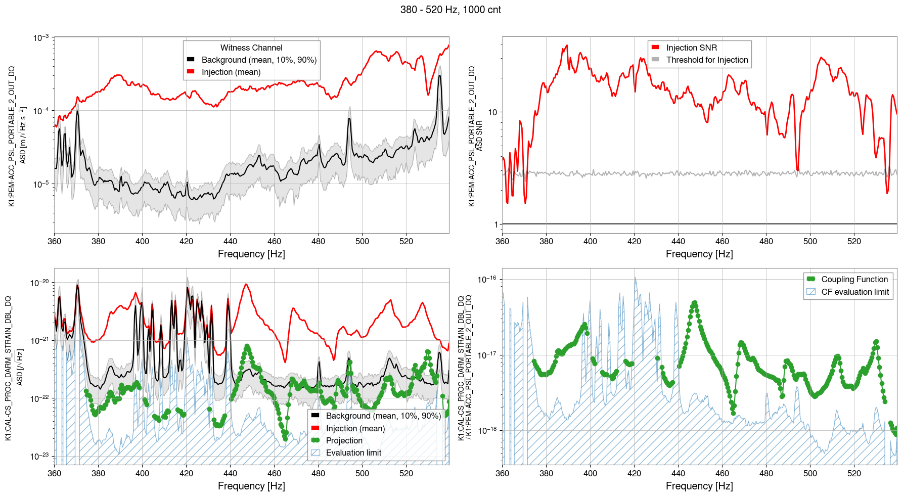 05:02:00 - 05:53:00 EXC channel : K1:PEM-EXCITATION_MCF0_RACK_12_EXC REF : K1:PEM-ACC_PSL_PORTABLE_2_OUT_DQ Shaker 4, swept sine injection, 400 - 155 Hz, 1 Hz resolution, 10 s in each frequency, 40 cnt