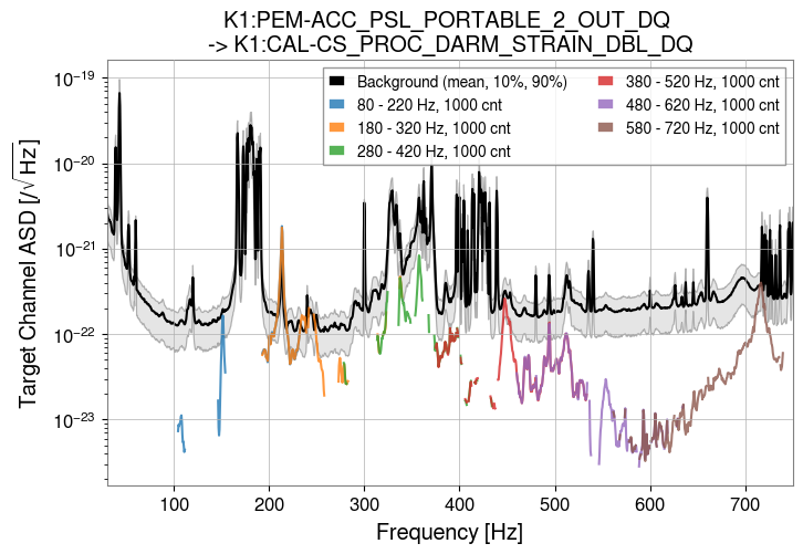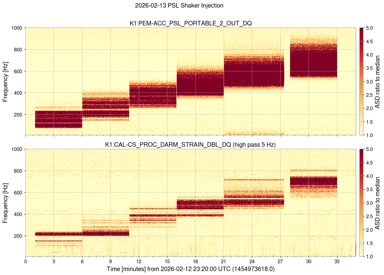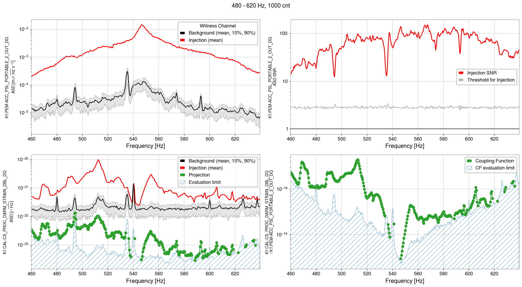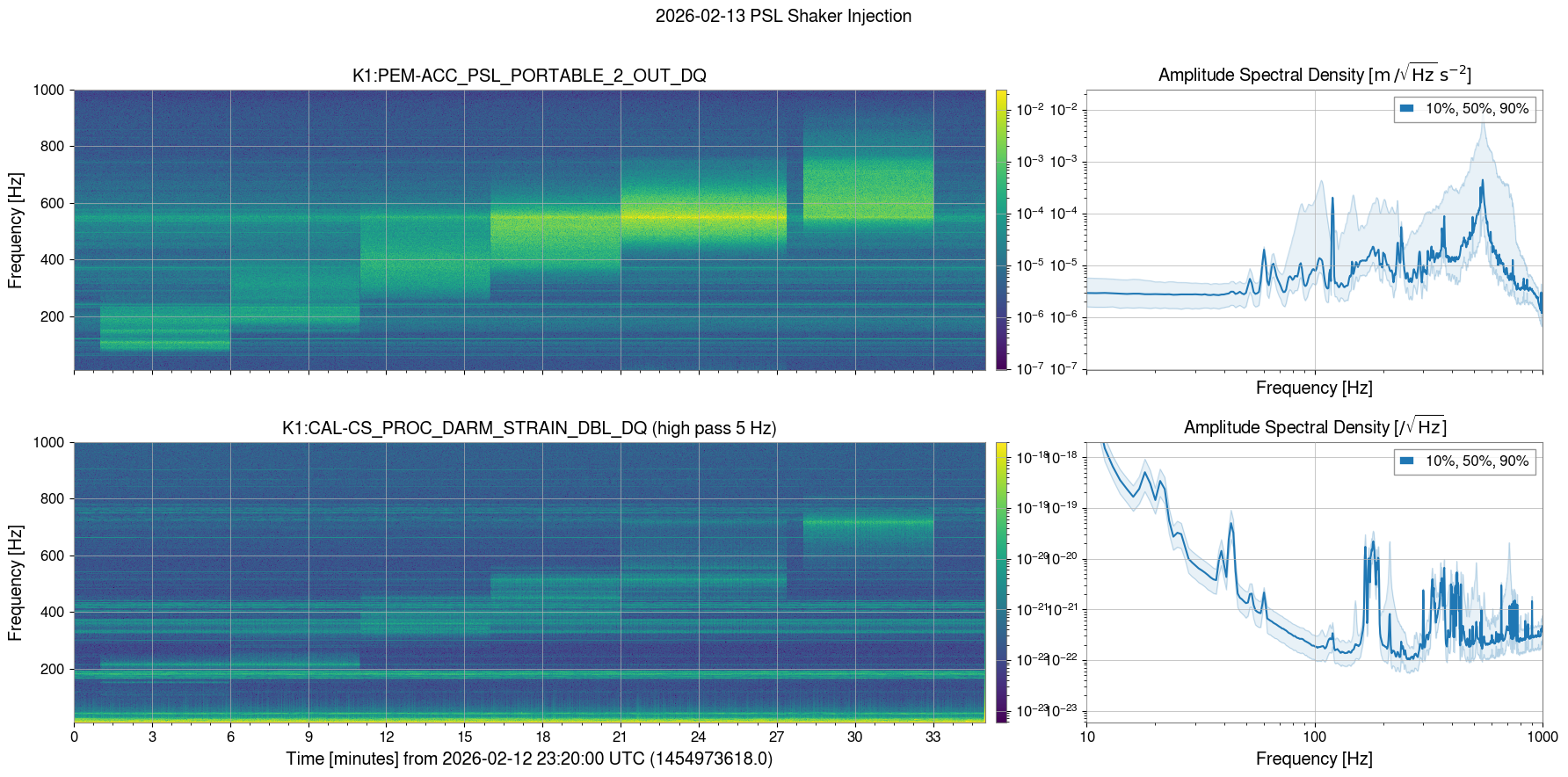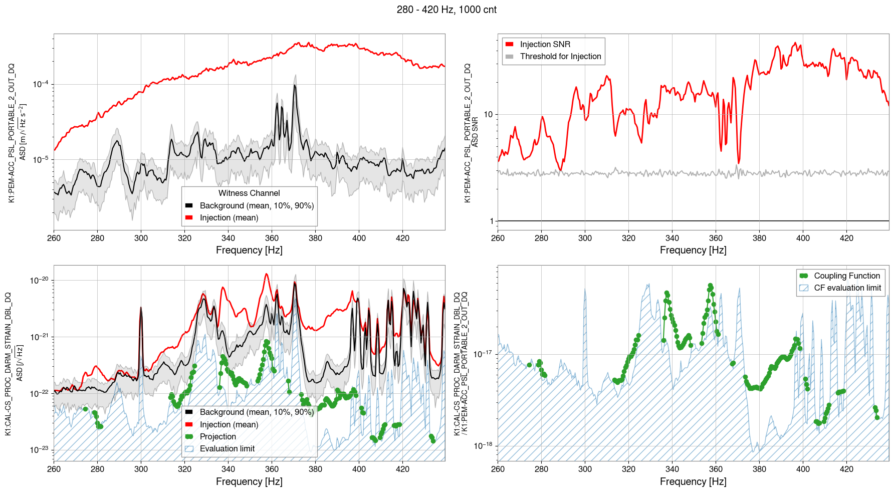Plots for the Shaker 4 injection:EXC channel : K1:PEM-EXCITATION_MCF0_RACK_12_EXCREF : K1:PEM-ACC_PSL_PORTABLE_2_OUT_DQ