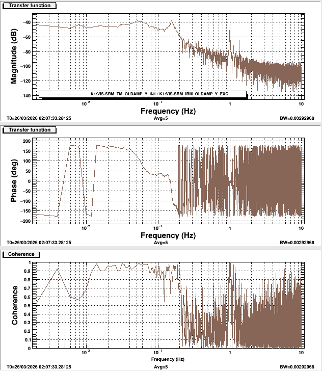 The measurement points around 300 mm deviate significantly from the fitting curve because, as shown in Photo 2 of klog: 36724, the beam split into two, and both spots were simultaneously fitted with a Gaussian. The apparently reasonable behavior around 350 mm is because only one of the split beams was successfully fitted with a Gaussian. However, since the beam was distorted as shown in Photo 3 of klog:36724, it should have been compared with the beam between 100 mm and 250 mm to determine whether to include it in the fitting; unfortunately, no photos were taken in that range. In addition, when the mesurement points around 350 mm are included in the fitting (Fig.2), the mesurement points between 100 mm and 250 mm deviate from the fitting curve compared to Fig.1. Therefore, we decided to use the results from Fig.1 to determine the positions of the two lenses for mode matching. (For the measurements of PRCL and SRCL, it is sufficient to observe the resonance of the TEM00 mode, so a slight mismatch in mode matching is considered acceptable.)